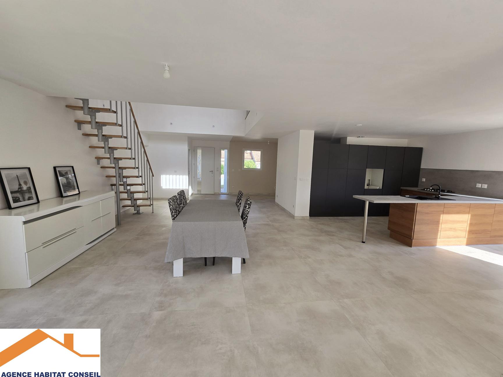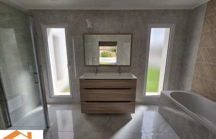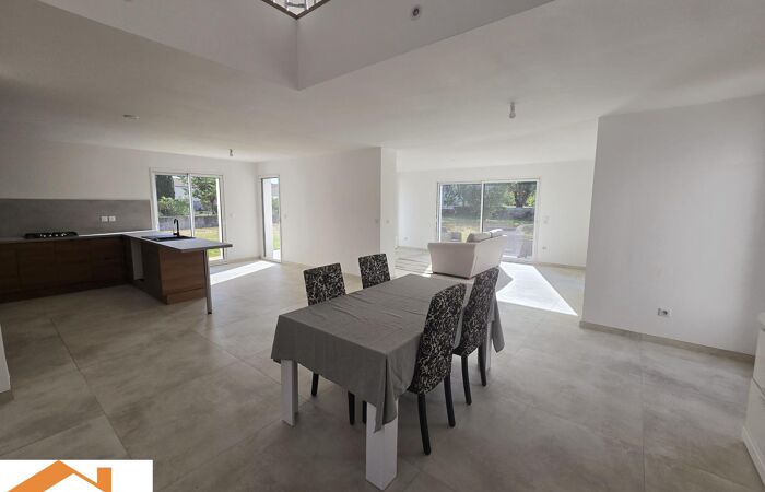 Cette maison contemporaine des années 2010 remise aux goûts du jour sur une parcelle de 1200m2 composée d'une pièce de vie lumineuse de plus de 75m2 avec une cuisine aménagée et équipée avec accès direct à la terrasse, une suite parentale avec une salle de bains (baignoire et douche), un WC séparé, une buanderie et un garage de 26m2.