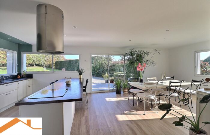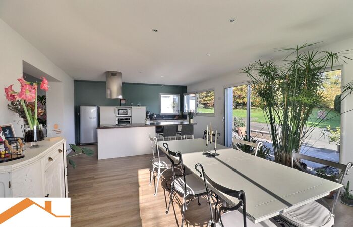 Dès l’entrée, vous serez séduits par les beaux volumes de l’espace de vie de plus de 90 m² : un spacieux et lumineux salon avec poêle à bois sera vous séduire, une grande cuisine aménagée et équipée avec coin salle à manger, parfait pour partager des moments chaleureux en famille ou entre amis. Une buanderie fonctionnelle avec de nombreux rangements.
