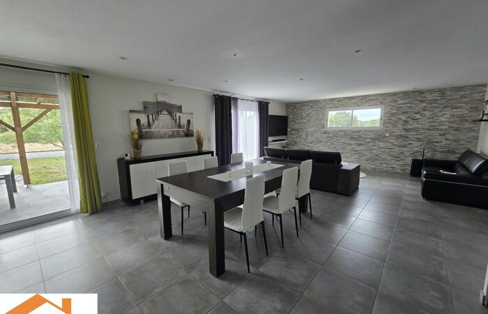 Elle se compose d'une entrée, un espace de vie lumineux de plus de 68m² avec une cuisine aménagée et équipée avec accès à une terrasse couverte et carrelée, une buanderie.