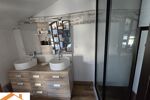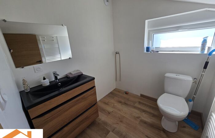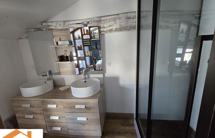 A l'étage, un palier desservant 3 chambres dont une avec salle d'eau, un point d'eau avec WC.