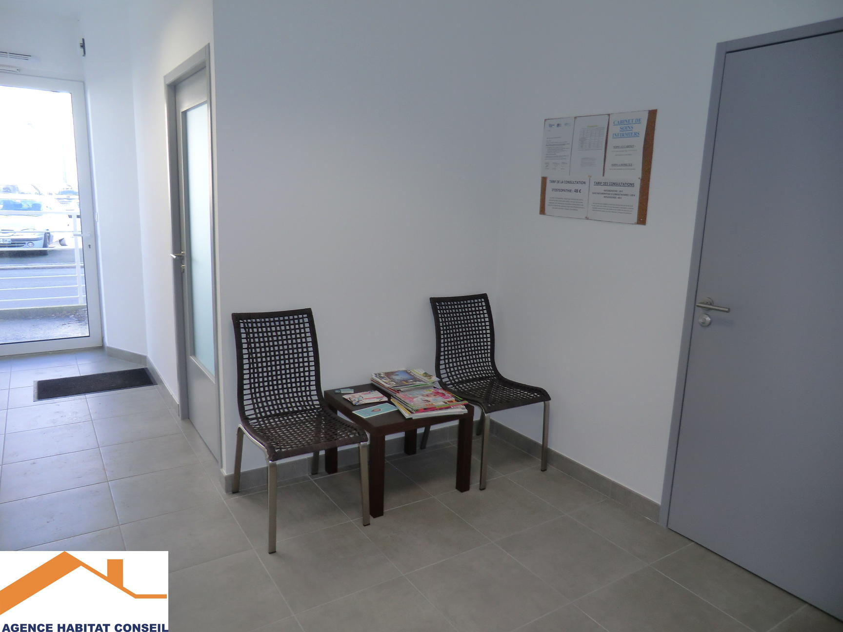 Une pièce de 20 m², dans un ensemble médical, salle d'attente commune.
