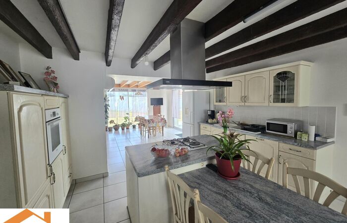 Une cuisine aménagée et équipée avec coin repas, conviviale et fonctionnelle
