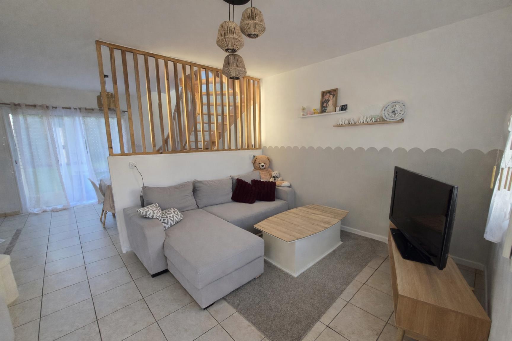 La maison se compose au rez de chaussée : d’un salon- séjour lumineux, d'une cuisine aménagée et équipée, d'une buanderie, d'une chambre avec dressing et une salle d'eau avec WC