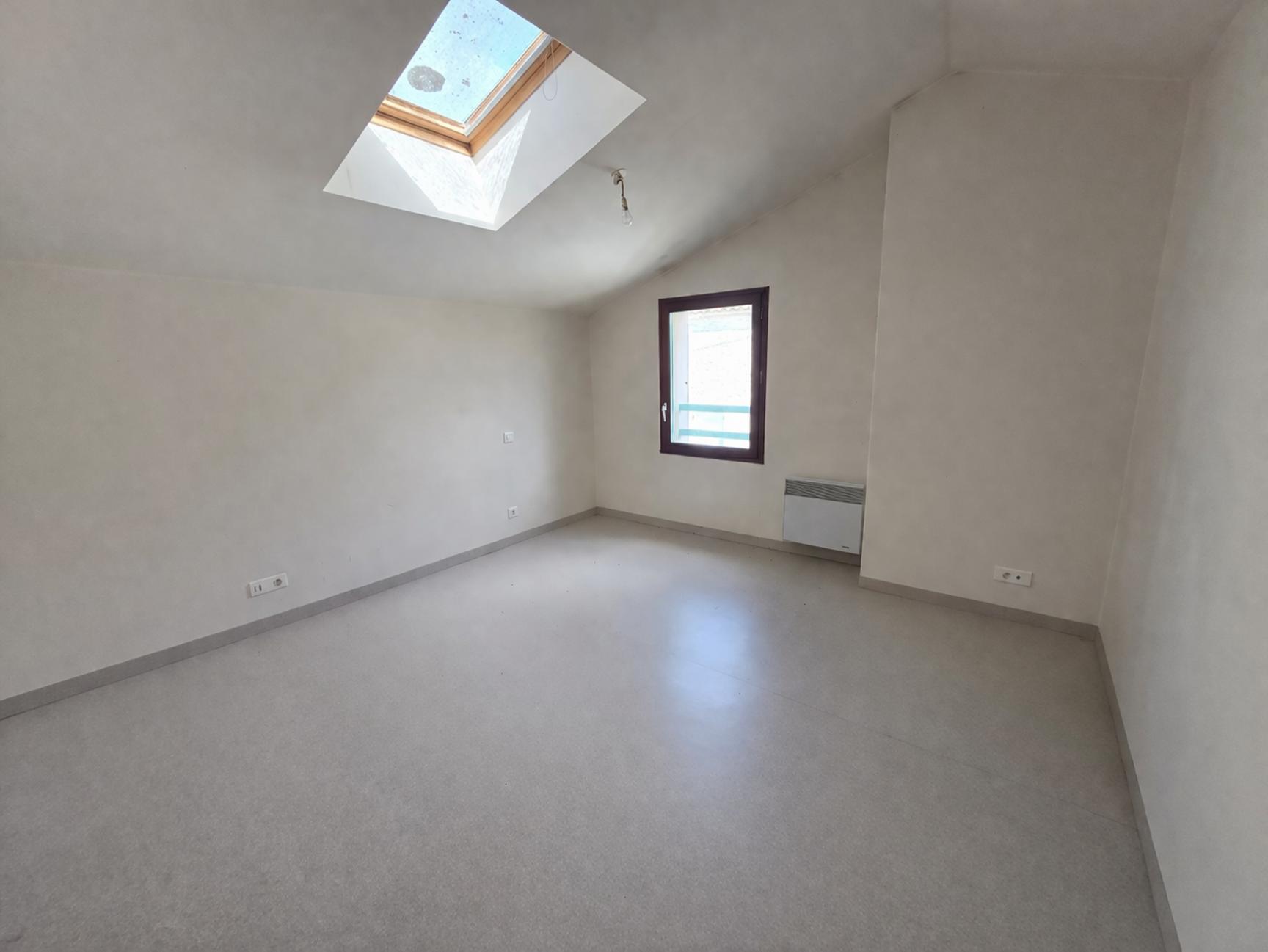 À l’étage, le bien propose une chambre et une salle de bain.
