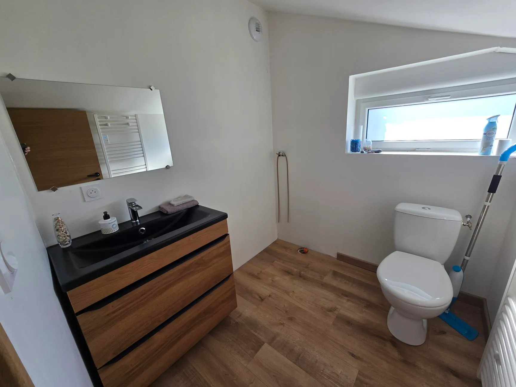 Elle se compose d'une entrée, un salon chaleureux, une cuisine aménagée et équipée, WC séparé, une buanderie.